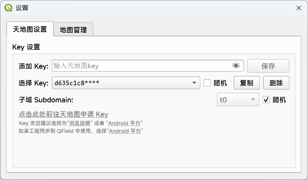 设置天地图 Key